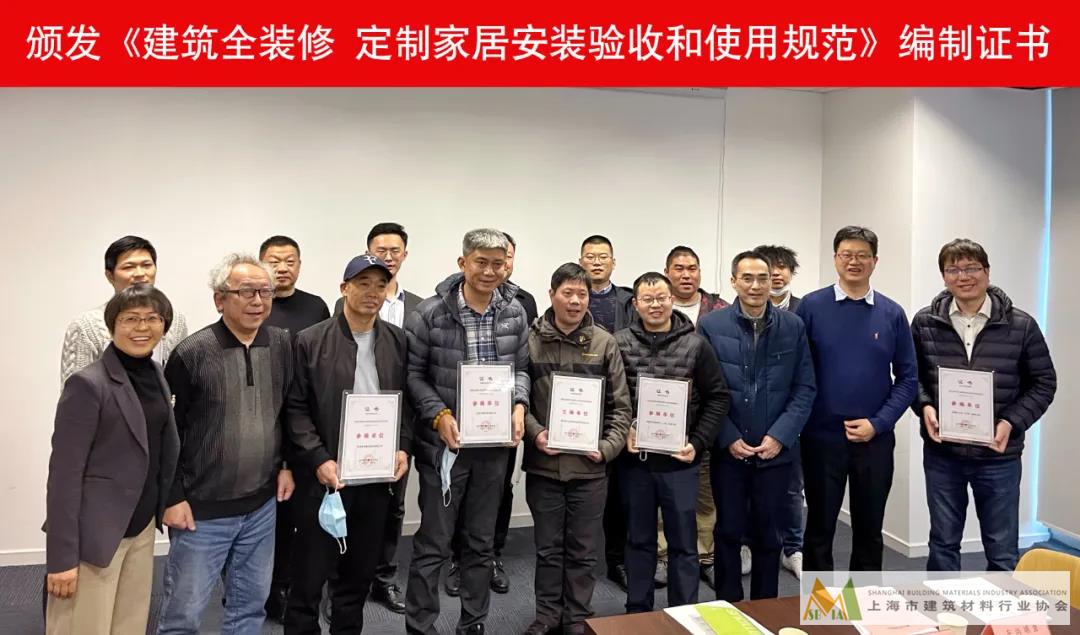 頒發(fā)《建筑全裝修 定制家居安裝驗收和使用規(guī)范》編制證書